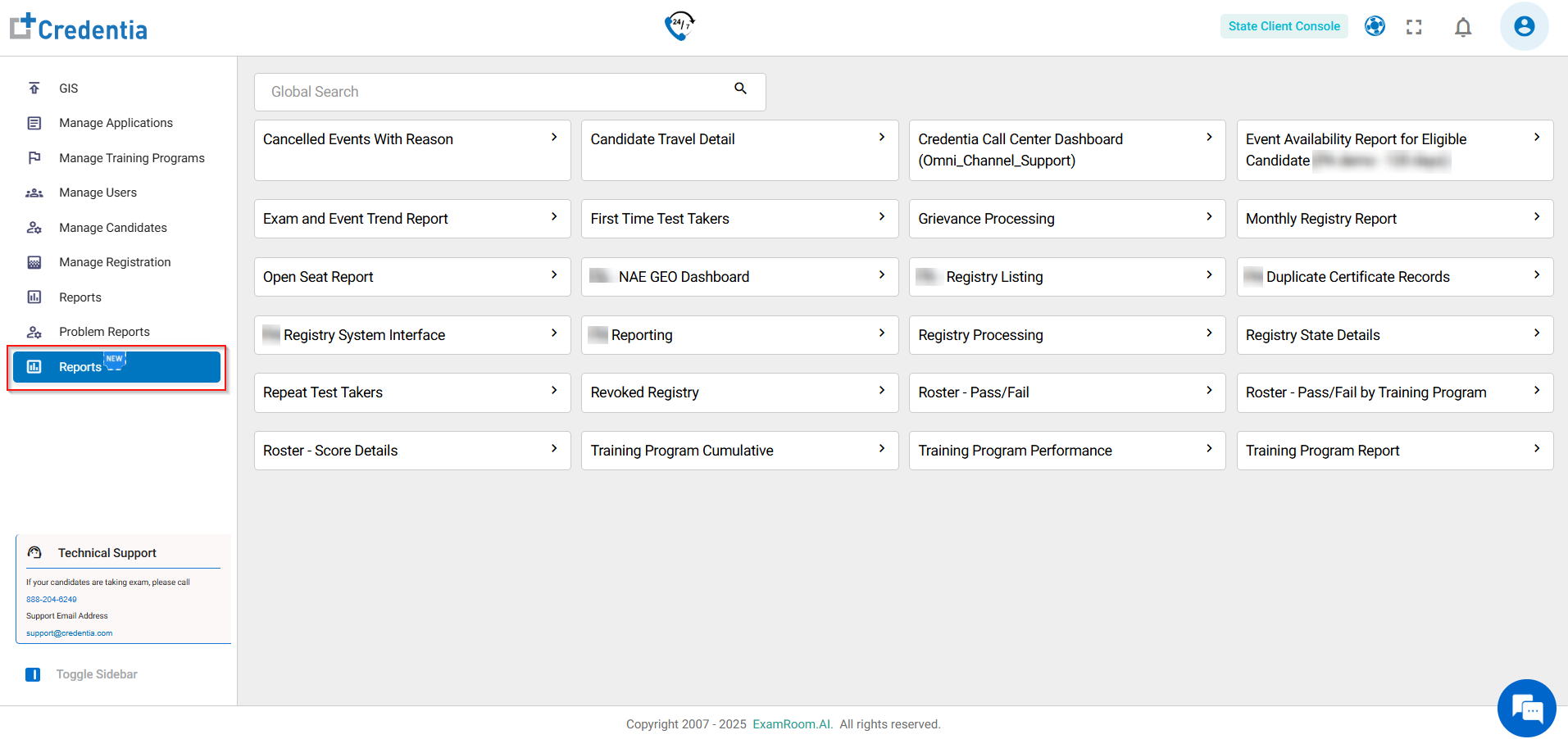 The Workbench Console offers access to preset live reports, dashboards, charts, and SQL options within the Credentia client console. Reports can be accessed with a single click (SSO login) from the Reports (new) section. To use all features, exit full-screen mode from a report view to see the top navigation tabs.