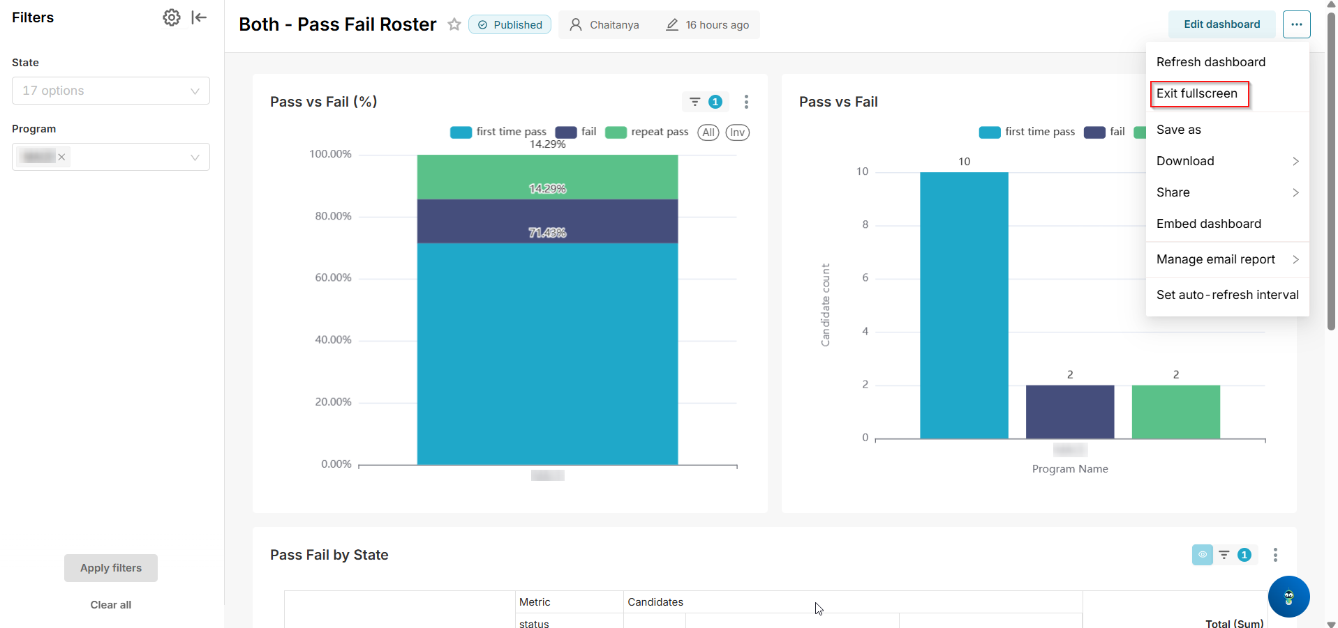 - Select Exit Fullscreen from the dropdown menu.