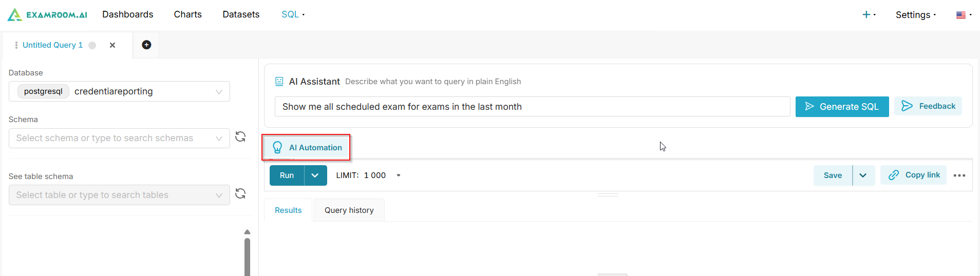 - Copy SQL to Editor: You can copy the generated query to the SQL editor to run or save.